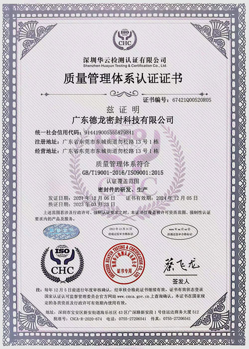 德龍密封榮獲[ISO認證]